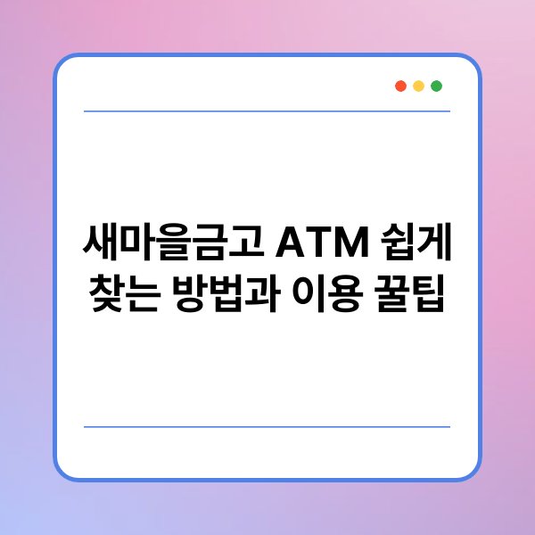 새마을금고 ATM은 많은 사람들이 자주 이용하는 금융 서비스입니다. 하지만 특정 지역이나 상황에서 ATM을 찾는 것이 어려울 수 있습니다. 이 글에서는 새마을금고 ATM을 쉽게 찾는 방법과 유용한 이용 꿀팁을 정리했습니다. 이를 통해 보다 효율적으로 금융 거래를 진행할 수 있을 것입니다. 특히, 다양한 방법을 통해 ATM의 위치를 확인하고 활용하는 방안을 제시합니다.