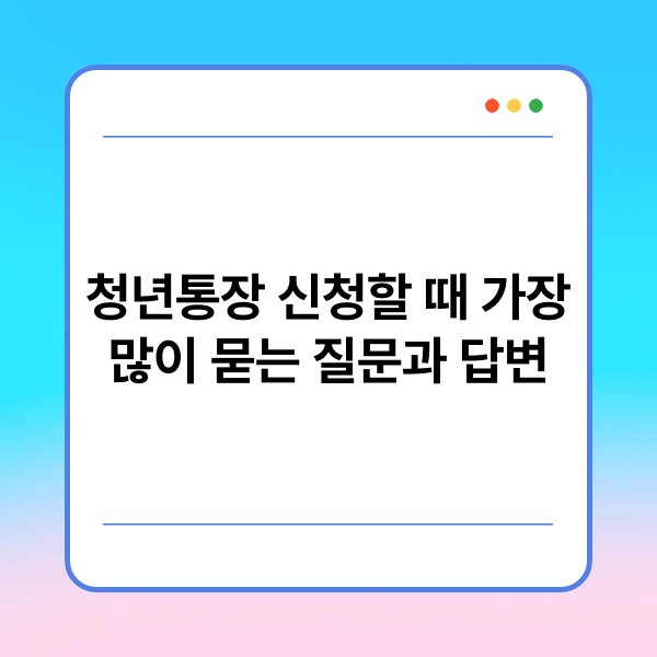 청년통장은 청년층의 자산 형성을 지원하는 중요한 금융 상품입니다. 많은 청년들이 이 통장을 통해 저축을 시작하고 있으며, 이에 따라 신청 과정에서 자주 묻는 질문들이 있습니다. 본문에서는 청년통장 신청 시 가장 많이 묻는 질문과 그에 대한 답변을 정리하였습니다. 이를 통해 청년통장에 대한 이해를 높이고, 신청 과정에서의 불편함을 최소화할 수 있도록 돕고자 합니다.